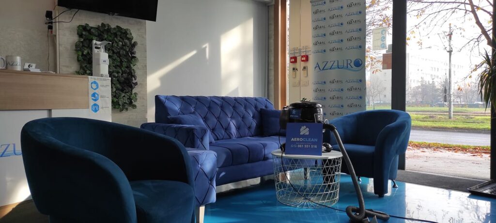 Za potrebe svih naših klijenata, nudimo uslugu čišćenja tapaciranog namještaja. Naš tim dolazi na adresu klijenta, gdje se kompletan proces i odvija. Tapacirani namještaj se prethodno usisa sa specijalnom elektročetkom. Elektročetka omogućava dubinsko čišćenje tepiha, namještaja i madraca. Elektročetka ima sposobnost dubinskog usisavanja do čak 8 cm dubine. Tvrdokorna prašina se podiže iz vlakana uz pomoć veoma jake vibracije i snažnog protoka vazduha (aero), što nam je bio sinonim za odabir naziva firme (Aero Clean), stavljajući sposobnosti elektročetke za dubinsko usisavanje kao baznu radnju kod svih naših usluga. Nakon postupka dubinskog usisavanja, odnosno izvlačenja prašine, grinja i nečistoća iz namještaja, pristupa se procesu dubinskog pranja. Tu se koristi Hyla EST sistem za pranje. Tapacirani namještaj se tretira potpuno prirodnim, biorazgradivim i antialergenim sredstvima za pranje. Posljednja faza u ovom procesu jeste izvlačenje prljave vode iz namještaja tretiranog našim sredstvima za pranje. Ovaj proces se vrši pomoću tzv. vakuuma, koji je također dio prethodno pomenutog sistema za pranje.